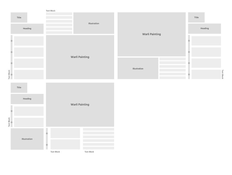 Large Poster: Large visualization with all the elements together, making a whole. It makes sense if I was painting the big picture about Warli culture. Small chunks of information but easy to compare and understand the gist. Circular annual calendar approach.