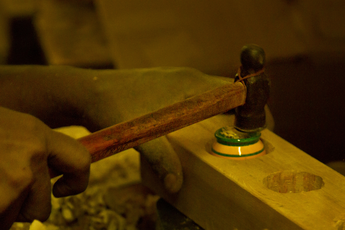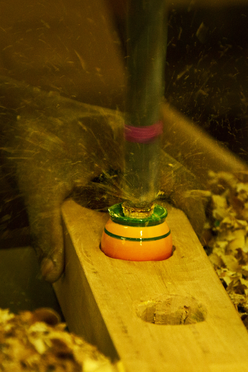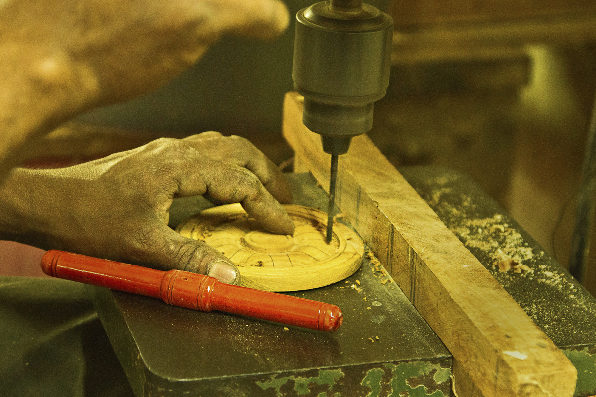 Shaping and Chiseling- Initially the design for the toys is decided and a sample of the toy is made. The craftsmen make the sample piece and examine the mechanism of the toy and time taken to make one toy. If the craftsman is satisfied with design and the time taken to make it, he approves to make more otherwise not. Masterpiece of the design is approved by the master-craftsman and is considered as reference for batch production.