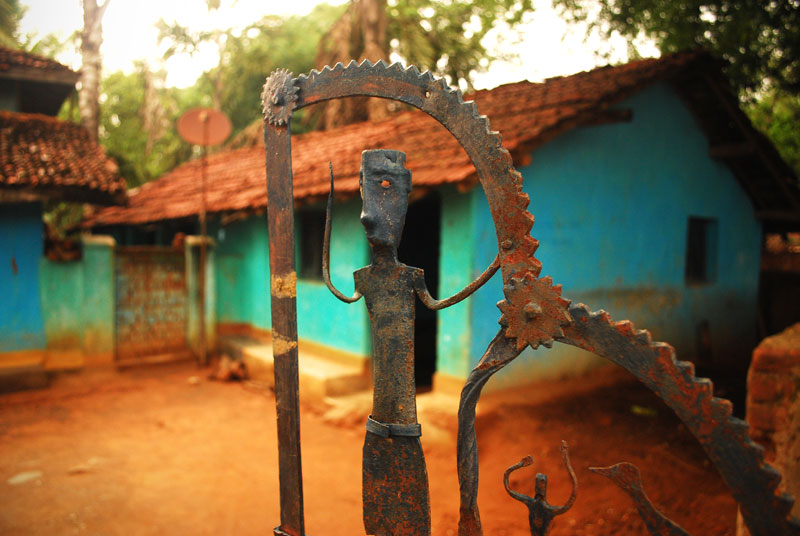Bastar, a land of tribals, is the largest district in the state of Chhattisgarh. Endowed with rich minerals deposits and precious stones, it forms the southern part of Chattisgarh. The total forest area of the district is roughly 7112 sq km, which is more than 75 per cent of the total area. Tribes consist of 31.8% of the total Chattisgarh population, with 66.3% of concentration in Bastar. The main tribes of Bastar are Gonds, Kamars, Biagas, halbas and Bhatras. This region is also famous for some distinctive and equally beautiful craft forms. Kondagaon is one of the bigger towns in the area and is considered to be the centre of handicrafts manufacturing. Tiju Ram Vishwakarma lives in the Kedaichepda village, which is about 20 kms from Kondagaon. Famous for ironsmith community, the village has about hundred people dedicated to wrought iron craft.