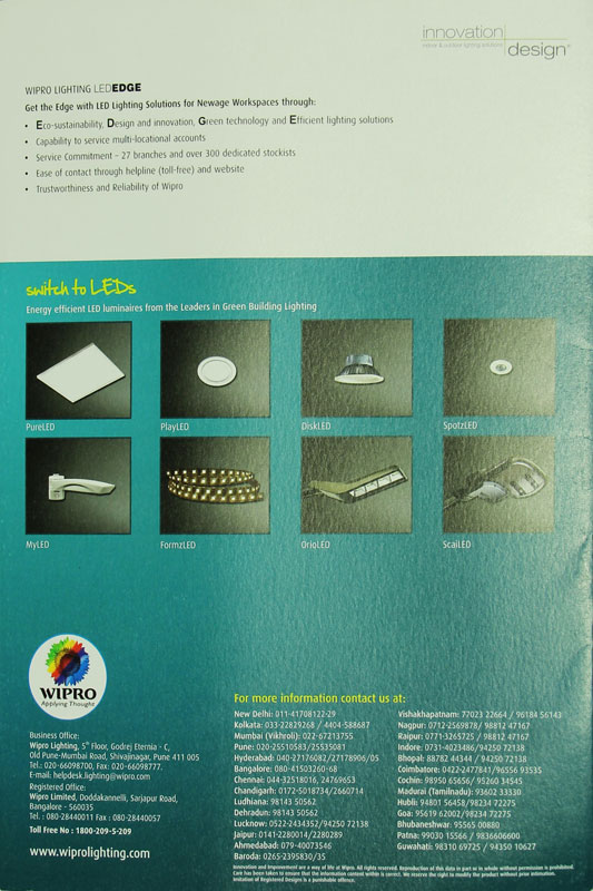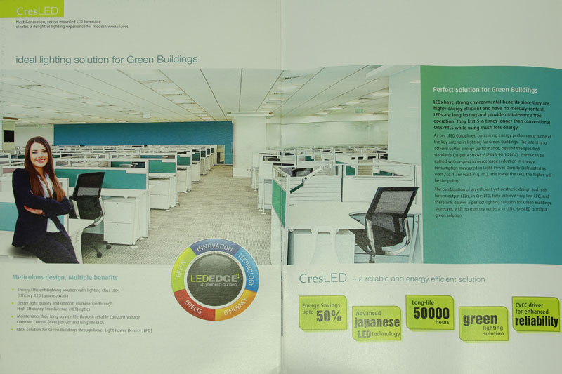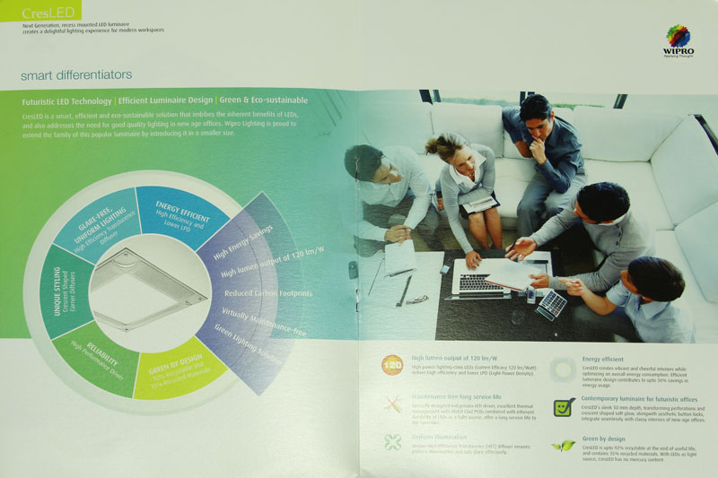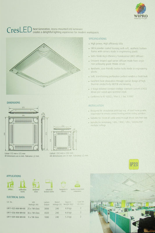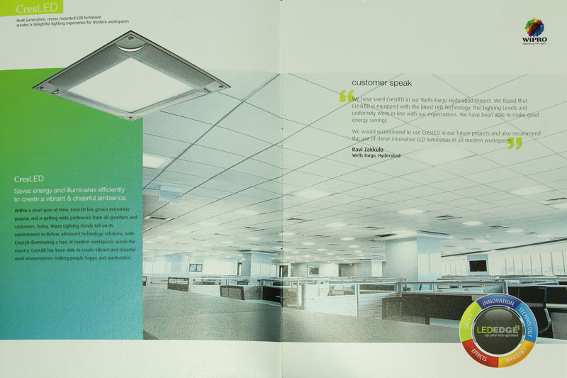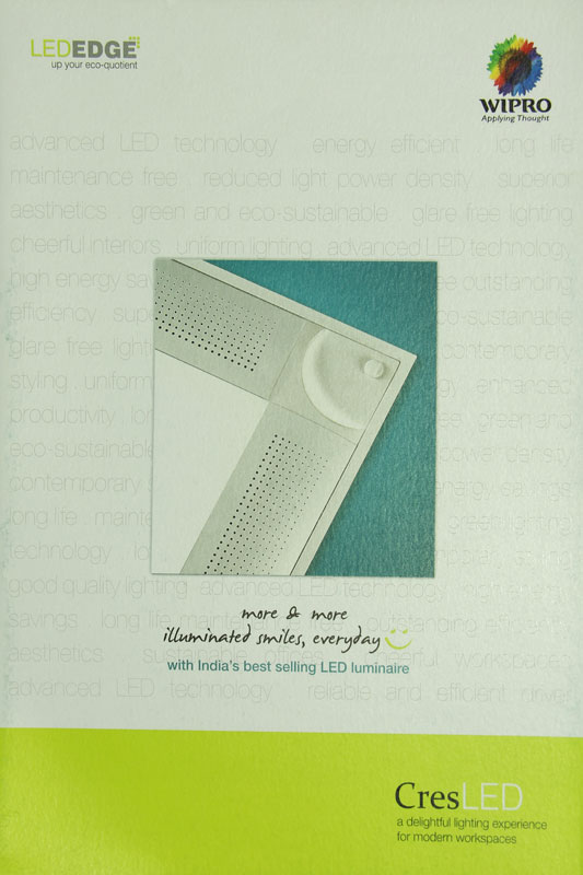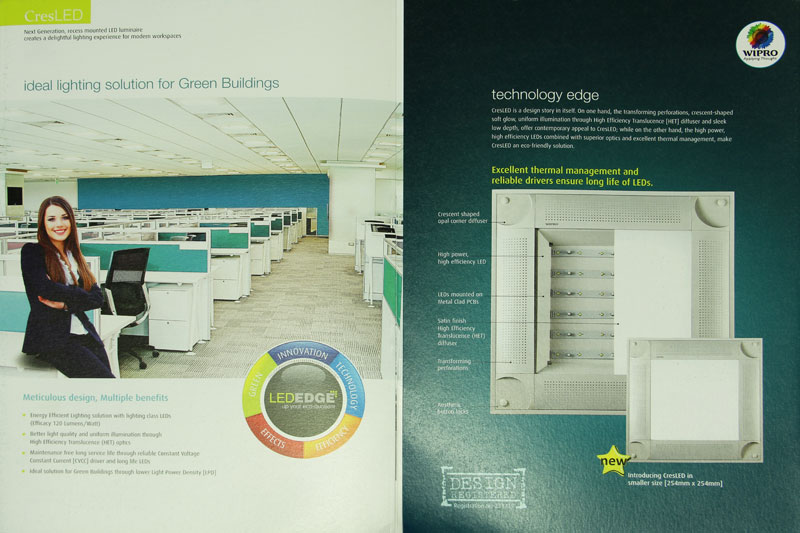 CresLED saves energy and illuminates efficiently to create a vibrant and cheerful ambience. It has become extremely popular within a short span of time and is getting wide preference from all specifiers and customers. With CresLED, Wipro Lighting can deliver advanced technology solutions making people happy and comfortable by creating cheerful work environments.